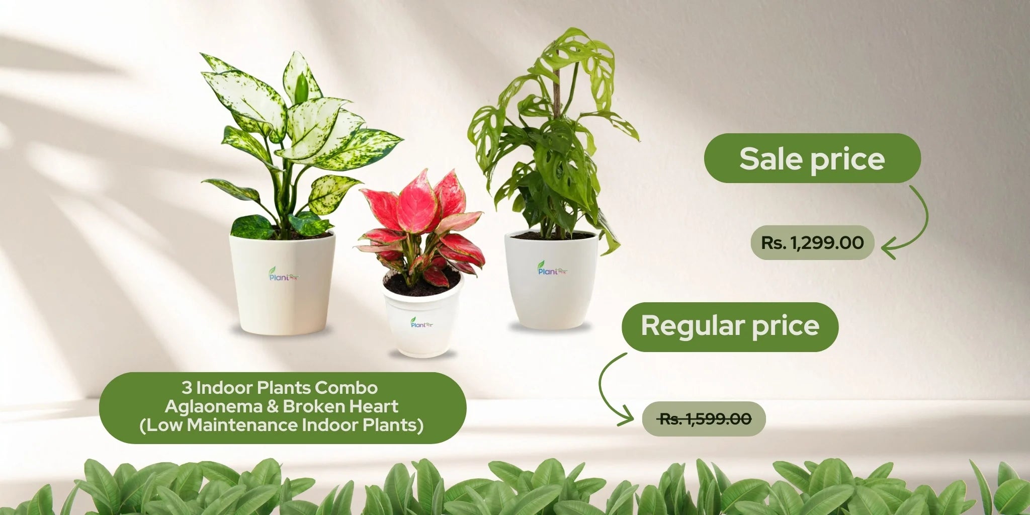 3 Indoor Plants Combo – Aglaonema & Broken Heart (Low Maintenance Indoor Plants)
